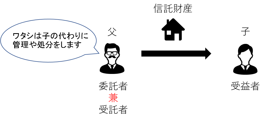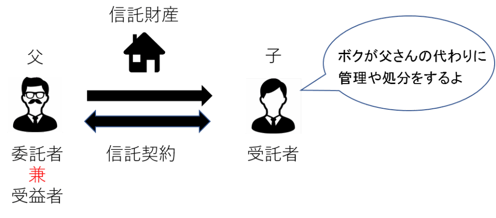 下図は委託者と受益者が同じ人の場合です。委託者と受益者が異なる場合は他益信託と呼ばれます。
